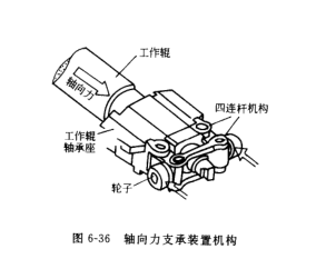 工作輥的止椎軸向力支承裝置機(jī)構(gòu)如圖 6-36 所示。該裝置裝在 工作輥工作側(cè)的軸頭上。