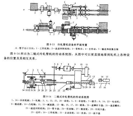 目前用冷軋的方法可以軋制直徑為 φ4~450mm、厚度為0.2~35mm管材。所用軋機主要為二輥式冷軋管機和多輥式冷軋管機。冷軋管機本身由各種設備和機構組成,一般包括以下幾個部分。